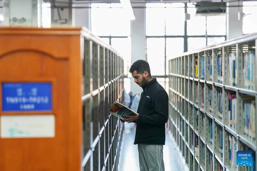Ahmed Medhat Mostafa Elsayed reads at the library of University of Science and Technology of China in Hefei, east China's Anhui Province, Nov. 28, 2025. (Xinhua/Du Yu)