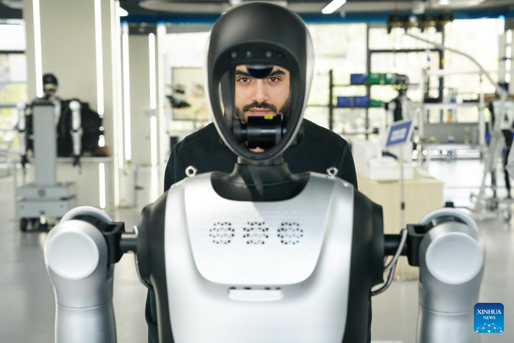 Ahmed Medhat Mostafa Elsayed poses for a picture at the pre-training venue for the Embodied Artificial Intelligence (EAI) robots data collection in Hefei, east China's Anhui Province, Nov. 28, 2025. (Xinhua/Du Yu)