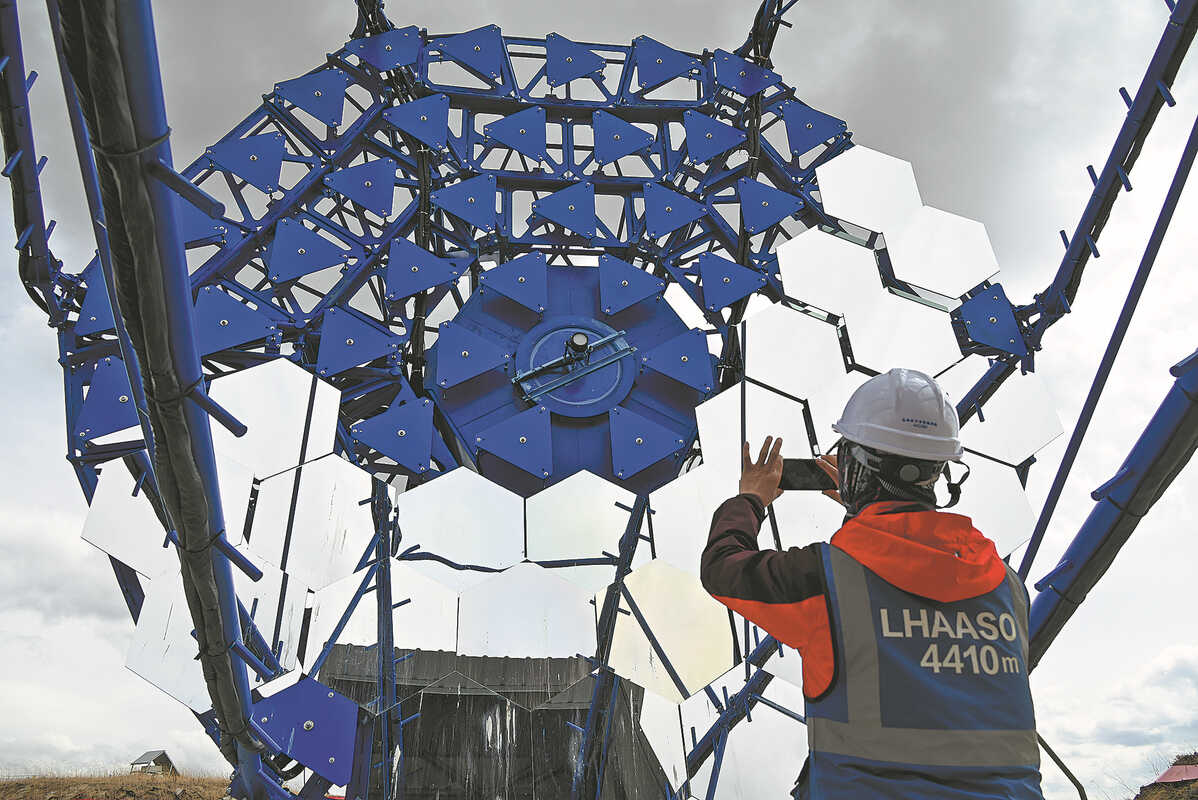 A telescope is installed at the Large High Altitude Air Shower Observatory in Daocheng, Sichuan province, in April last year. WANG QIN/FOR CHINA DAILY
