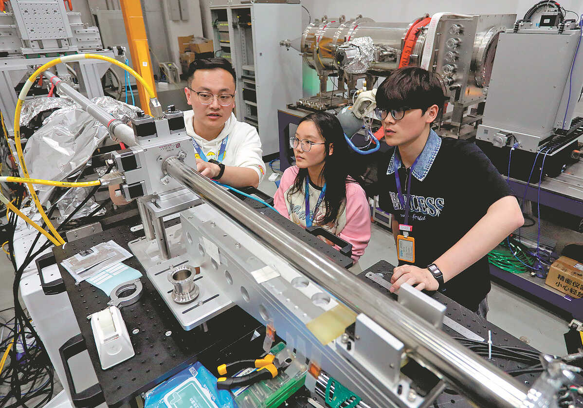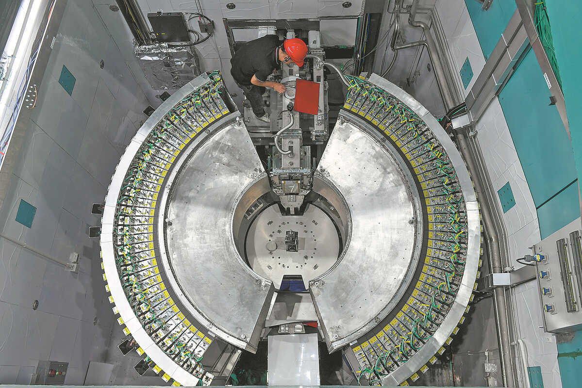 Scientists inspect the Shanghai Synchrotron Radiation Facility in Shanghai in April. FANG ZHE/XINHUA