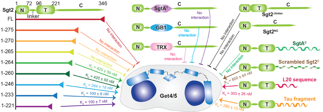 Fig. 1. Sgt2 auto-inhibition is determined by the specific sequence of the C-terminal IDR and is independent of the middle TPR domain or other protein fragments. (Image by JI Tuo)