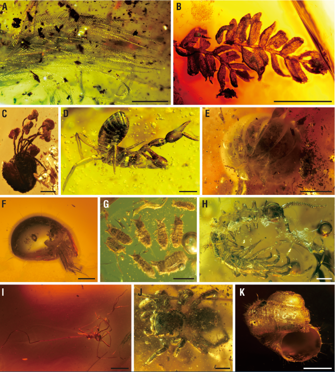 The Zhangpu amber biota contains a diverse, exquisitely preserved fossil arthropod fauna and abundant botanical and other inclusions such as fungi, snails, and even feathers. Botanical inclusions include bryophytes (liverworts and mosses) and flowering plants.