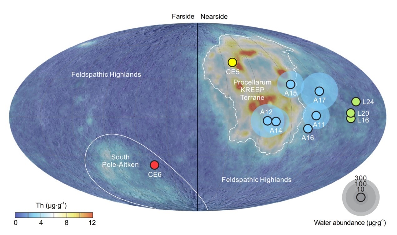 Lunar sample return sample missions with associated water content estimates. (Image by Prof. HU Sen's group)
