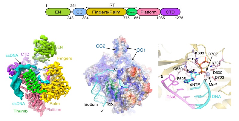 Structure of the functional LINE-1 ORF2p retrotransposition complex (Image by XU Ruiming's group)