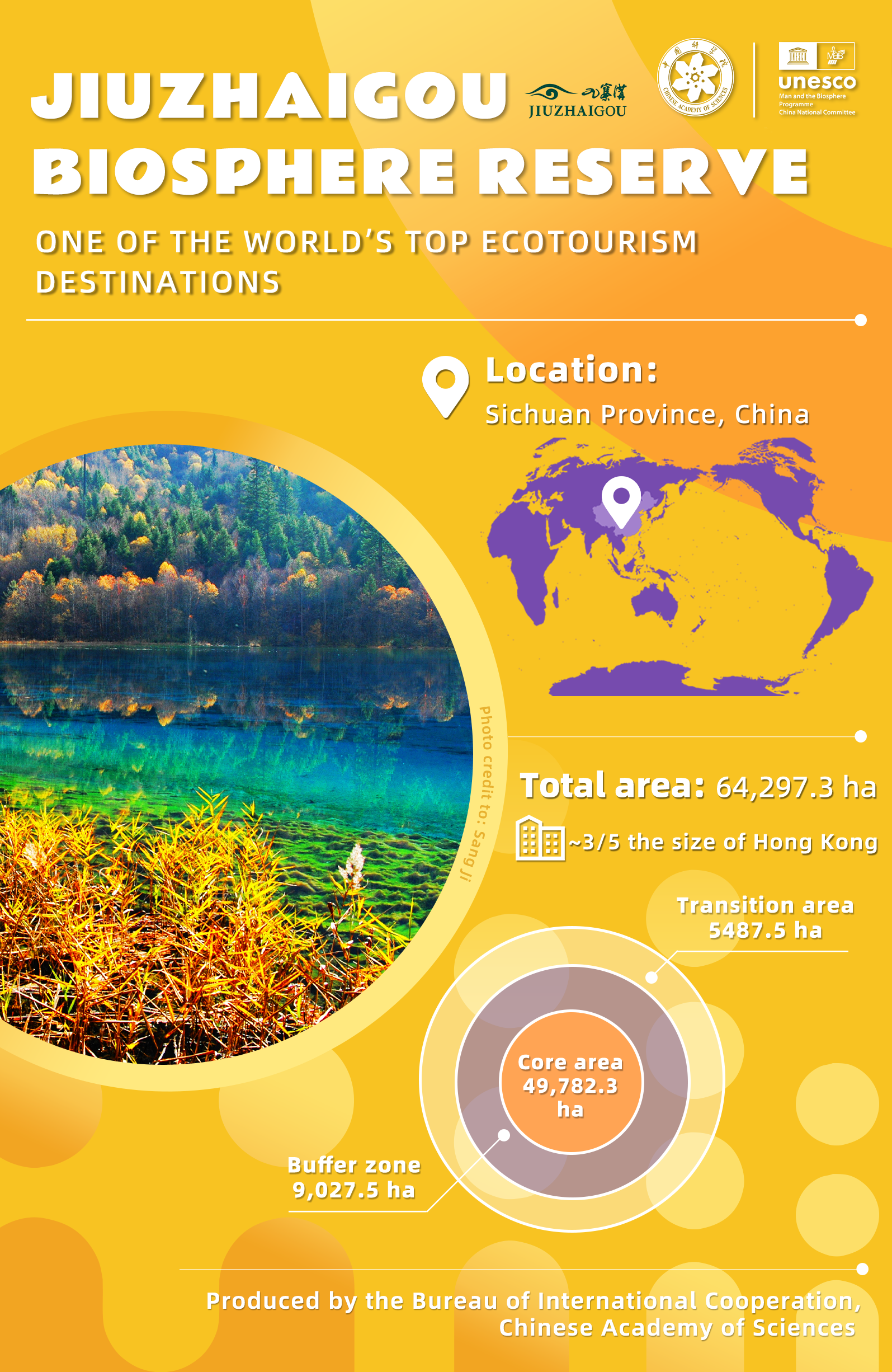 Jiuzhaigou, known as a world-class ecotourism destination, was designated a UNESCO Biosphere Reserve in 1997.