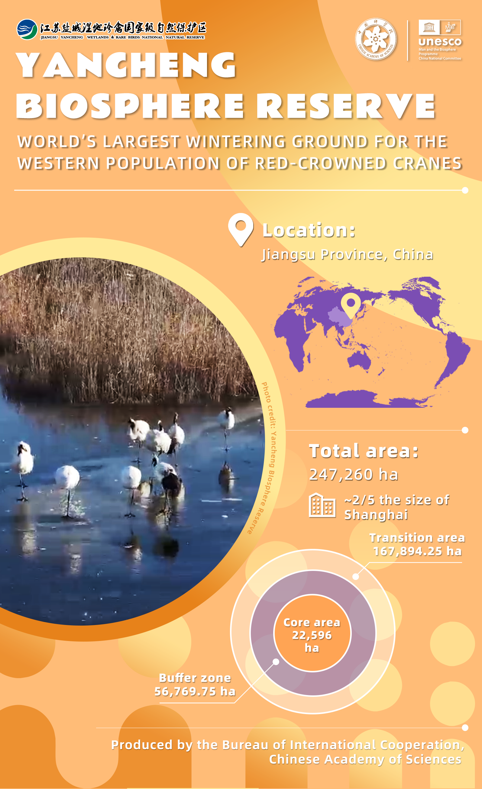 In 1992, Yancheng was designated a UNESCO Biosphere Reserve, becoming a model of coastal ecological protection in China. Covering about two-fifths the size of Shanghai, it is China's largest coastal reserve and one of the few well-preserved natural coastal zones.