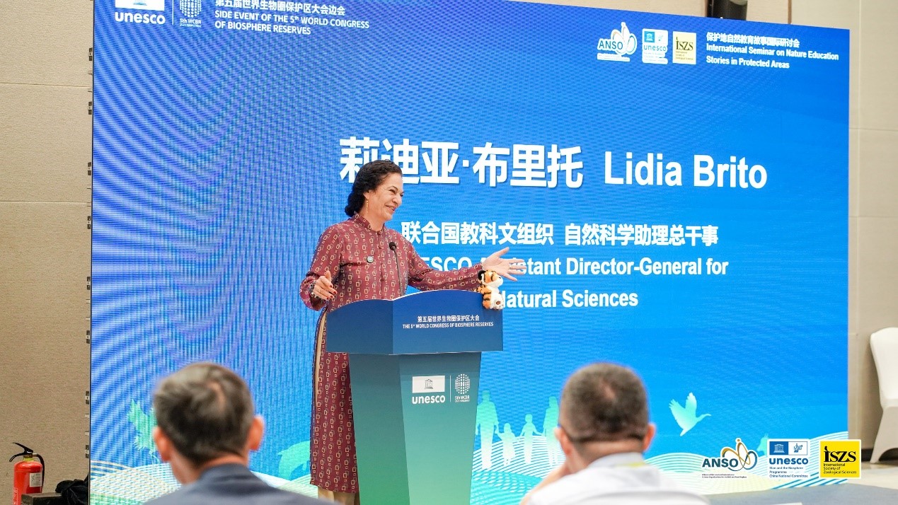 On September 23, 2025, the International Seminar on Nature Education Stories in Protected Areas, a side event of the Fifth World Congress of Biosphere Reserves was held in Hangzhou, China. The seminar was jointly hosted by the Alliance of National and International Science Organizations for the Belt and Road Regions (ANSO), the China National Committee for UNESCO's Man and the Biosphere Programme (MAB China), and the International Society of Zoological Sciences (ISZS). Themed with "sharing nature education stories in protected areas," it aimed to promote the international exchange of practices and enhance international cooperation in nature education, thus contributing to building a community that supports all life on Earth.