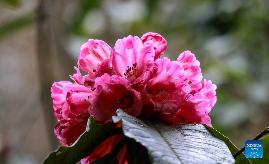 In 2021, Yunnan authorities upgraded its protection list of wild plants with extremely small populations, and the big tree rhododendron was removed from the list. (Xinhua)