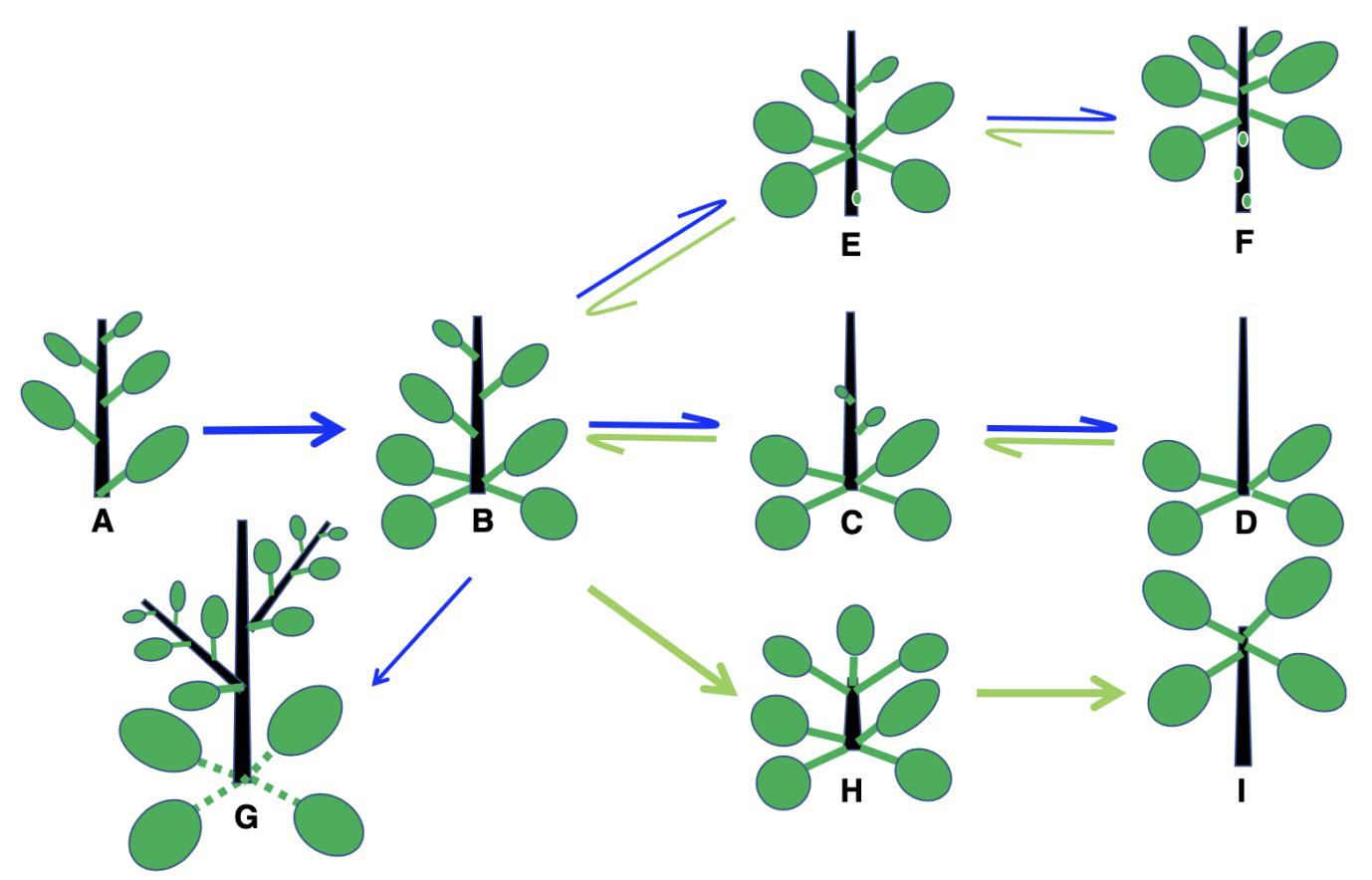 Presumed evolution of leaf arrangements in Ainsliaea (Image by WBG)