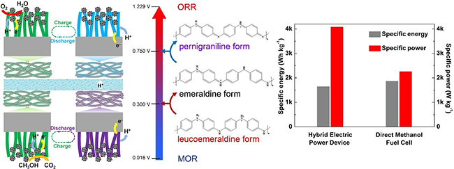 Based on previous studies on the key electrode materials, direct alcohol fuel cells and supercapacitors, the scientists for the first time coupled the voltage-sensitive PANI with the catalyst layers of direct methanol fuel cells (DMFCs).