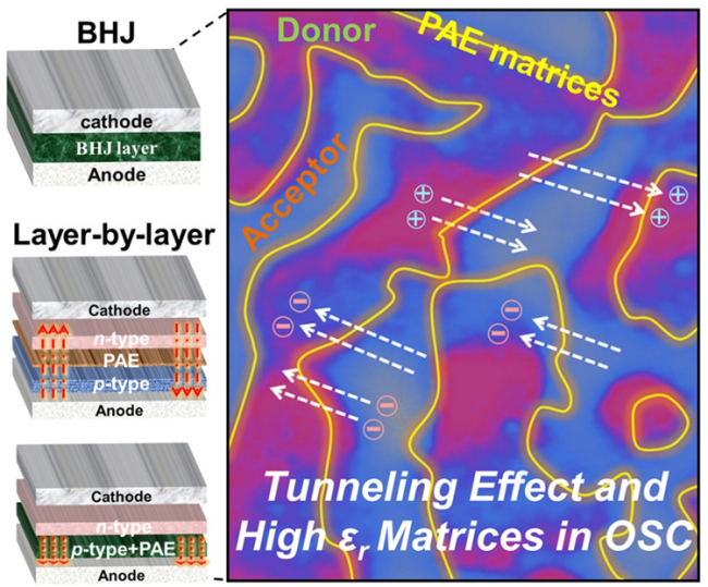 The proposed tunneling effects and PAE matrices strategy have important implications for fabricating efficient, stable, and flexible organic devices.