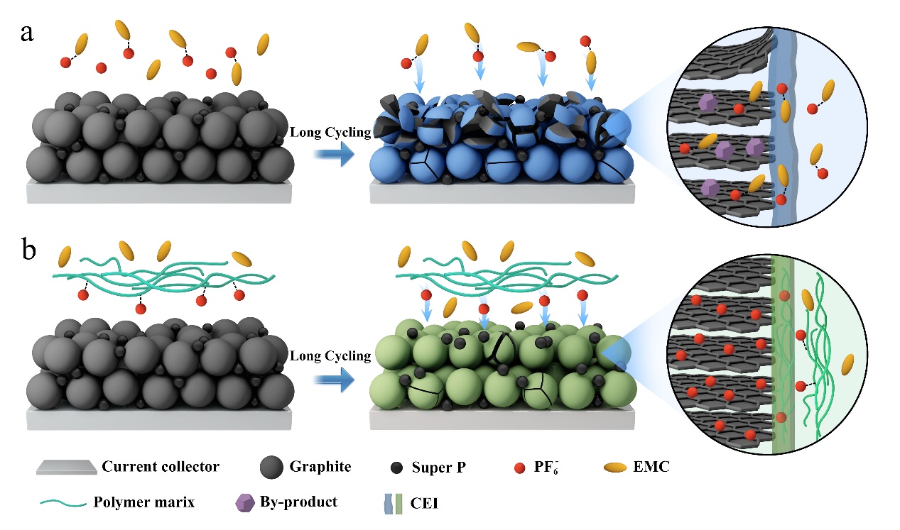 Dual-ion batteries (DIBs) have attracted extensive attention due to their non-transition metal configuration, economy and environmental friendliness. "Practical implementation of DIB technology is nearly stagnant, mainly due to rapid battery failure during high-voltage cycling," said first author JIANG Hongzhu, doctoral candidate at QIBEBT, CAS.