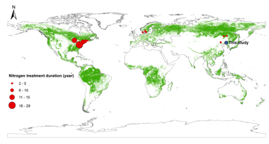 By integrating tree growth data from nitrogen addition experiments in other temperate and boreal forests worldwide, they found the similar pattern as in Qingyuan forests: simulated nitrogen deposition increased woody biomass increment and foliage litterfall production by 24% and 9% on average.