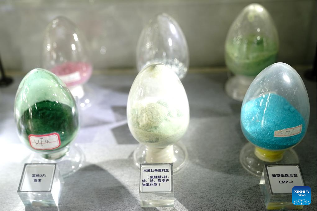 This photo shows key components of the fuel for the experimental Thorium Molten Salt Reactor (TMSR) displayed at the Wuwei campus of the Chinese Academy of Sciences' Shanghai Institute of Applied Physics (SINAP) in Minqin County of Wuwei City, northwest China's Gansu Province, Oct. 24, 2025. (Xinhua/Zhang Jiansong)