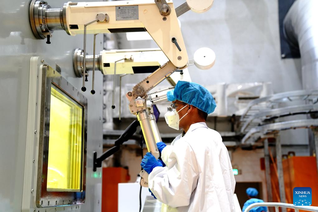 A researcher works at the charging-sampling hot cell of the experimental Thorium Molten Salt Reactor (TMSR) at the Wuwei campus of the Chinese Academy of Sciences' Shanghai Institute of Applied Physics (SINAP) in Minqin County of Wuwei City, northwest China's Gansu Province, Oct. 24, 2025. (Xinhua/Zhang Jiansong)