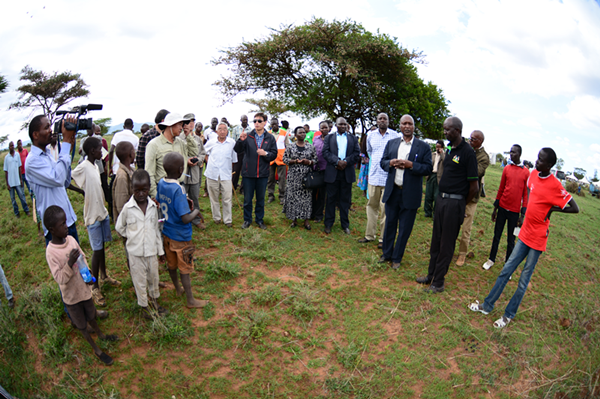 Lei Jiaqiang (C) discusses restoration techniques of degraded grasslands with local experts in Baringo County, Kenya, November 20, 2015. /Courtesy of Lei Jiaqiang
