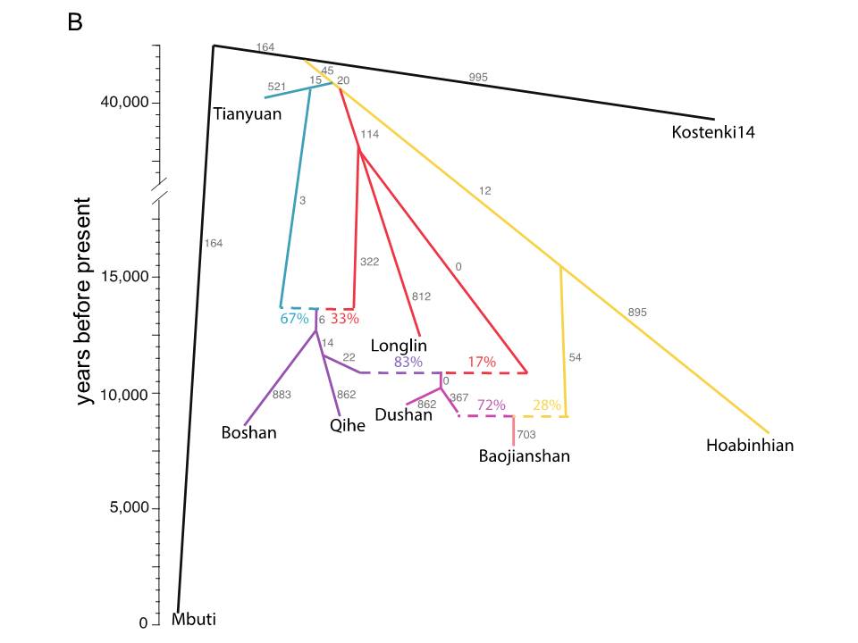 Fig. 2 Phylogenetic tree of early Asian populations (Image by IVPP)