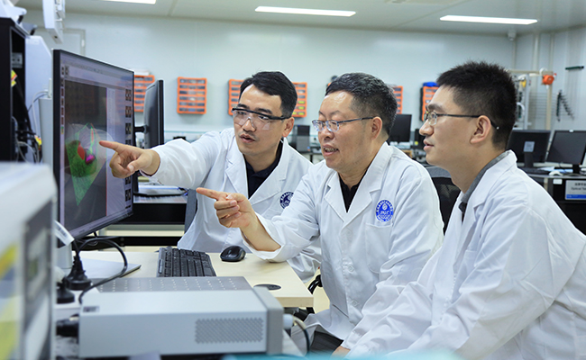 Prof. LI Can, Prof. FAN Fengtao, and Dr. CHEN Ruotian are analyzing the result (Image by LIANG Xiao)