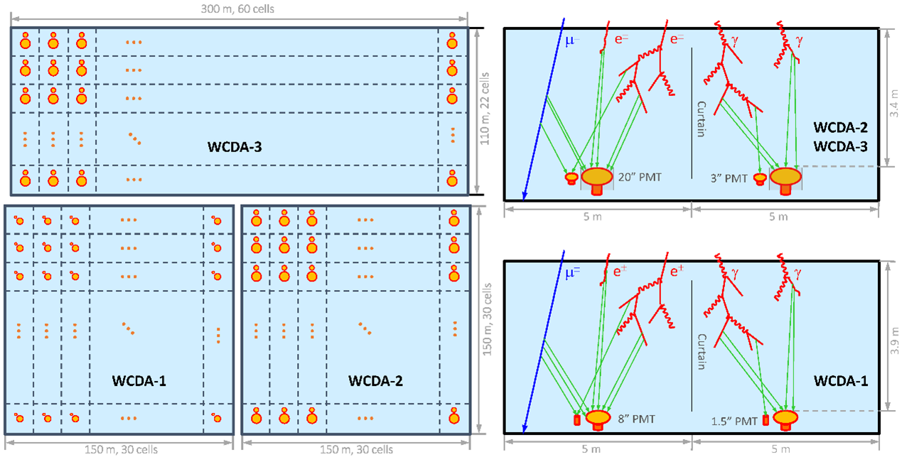The current results are primarily provided by the WCDA. The WCDA utilizes 360,000 tons of purified water as a medium and employs 6,240 photomultiplier tubes placed underwater. It measures the secondary products of gamma rays or cosmic rays produced in the atmosphere, by collecting Cherenkov light signals generated by these secondary particles in water. The energy range of gamma-ray observations spans two orders of magnitude, from around 100 GeV to more than 10 TeV. With its wide field of view and high duty cycle capability, the WCDA has prominent advantages in capturing transient celestial phenomena like GRBs.