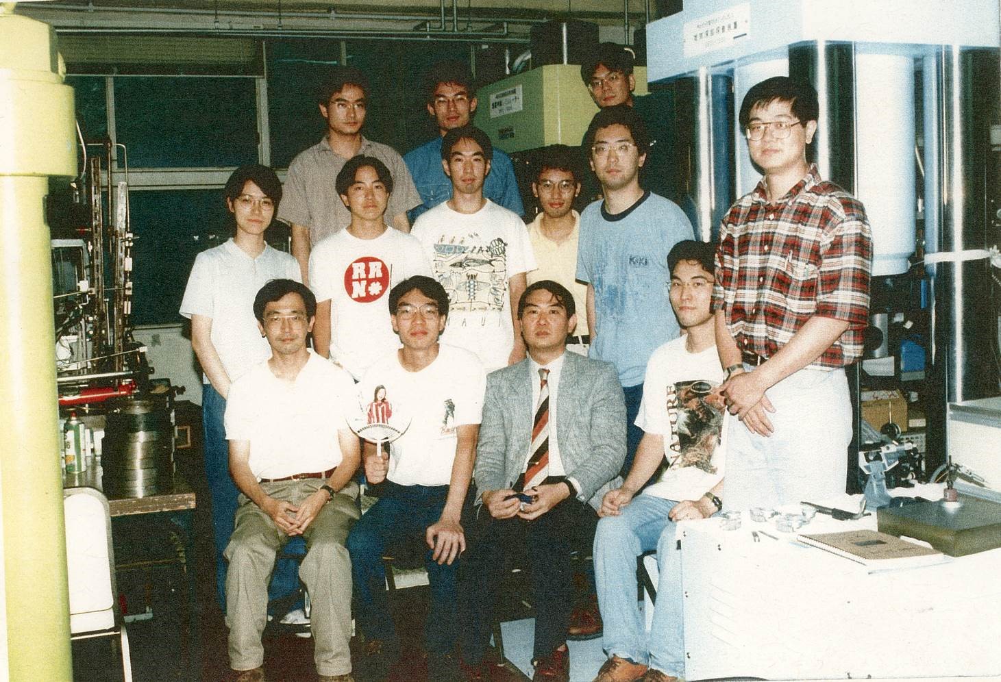 Takahashi (front row, third from the left) builds his research team and laboratory at Tokyo Tech. (Image by GIG)